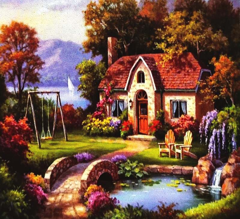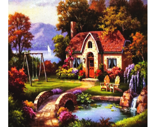 Deimantinės mozaikos rinkinys 20x30cm NAMELIS IR TILTELIS, HI STONE