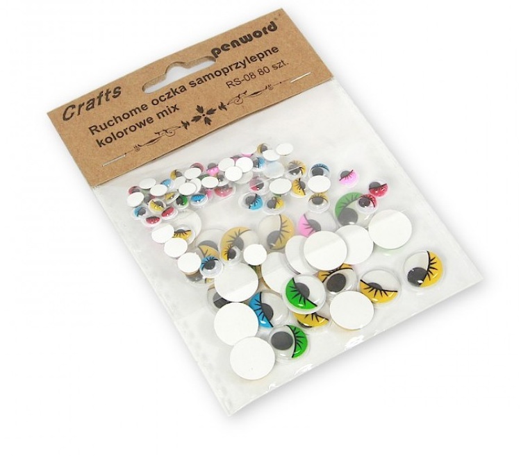- Lipnios akytės su blakstienomis, įvairių spalvų ir dydžių, PENWORD, 80vnt. RS-08