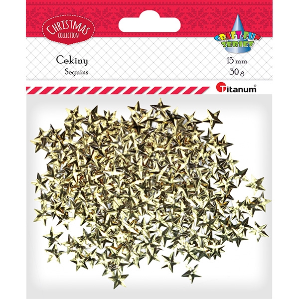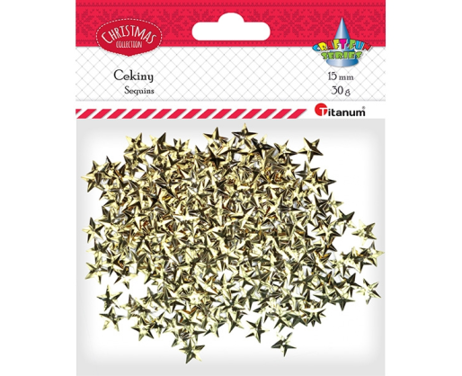 Dekoracija blizgučiai "Žvaigždės" auksinės 15mm 30g Titanum