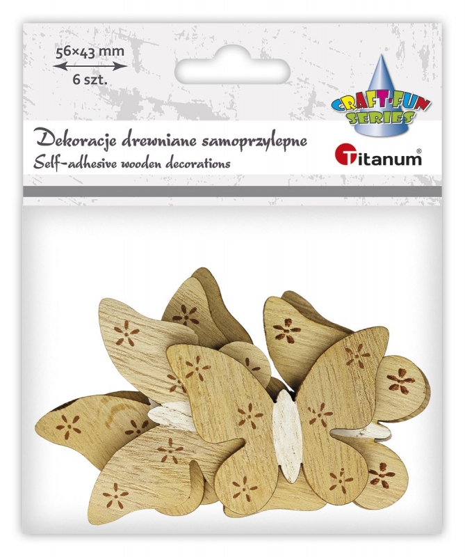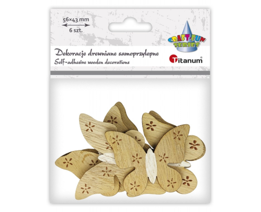 - Dekoracija rankdarbiams "Drugeliai" mediniai 6vnt./56x43mm TITANUM