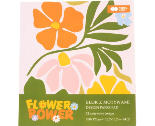 - Dekoratyvinio popieriaus albumas 15,2x15,2cm/24l. 180/120g/m2 BLOOM 12 motyvų, Happy Color