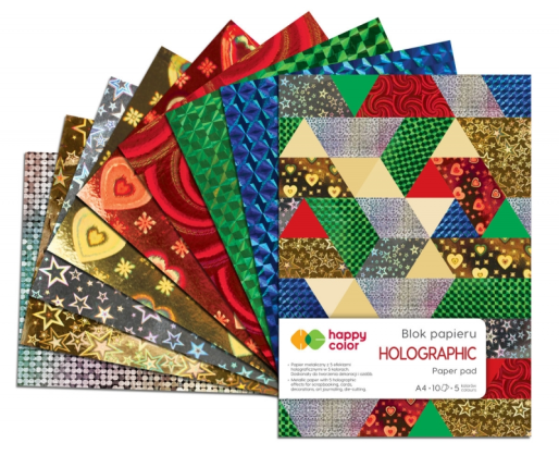 - Dekoratyvinio popieriaus albumas A4/10l. 70g HOLOGRAPHIC Happy Color