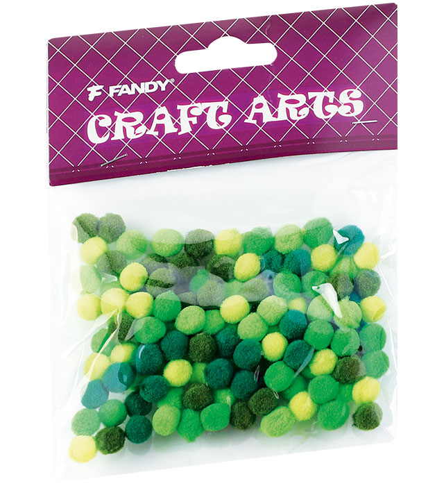 - Dekoracija pomponai žaislams daryti Fandy, 10mm, 120 vnt., žalios sp.