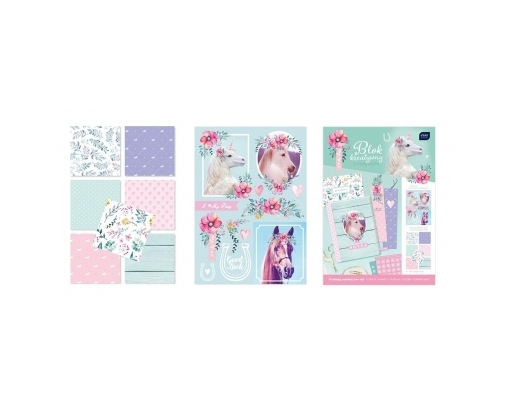 - Dekoratyvinio popieriaus albumas A4/16l. PONY + lipdukai "Raidės"