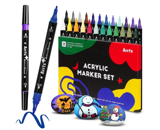 Ryškūs, aukštos kokybės akriliniai markeriai-flomasteriai ARRTX yra skirti piešti ant įvairių paviršių, tokių kaip popierius, kartonas, drobė, audinys, metalas, keramika, plastikas, medis, akmuo ar kitų. Komplektą sudaro 24 flomasteriai. Flomasteriai saugūs, bekvapiai, berūgščiai, pagaminti vandens pagrindu. Šis rinkinys yra puiki dovana vaikams, studentams, menininkams, ir visiems, kas mėgsta kūrybinius darbelius. Neribokite savo fantazijos!Ypatybės:
