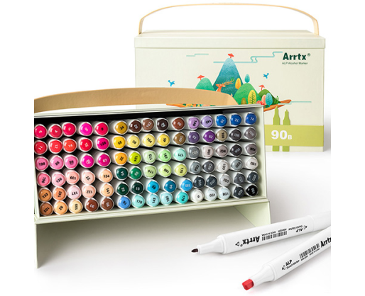 Itin ryškūs ir kokybiški profesionalūs markeriai-flomasteriai ARRTX Alp, 90 spalvų, skirti piešimui, iliustravimui, eskizavimui, ryškinimui, atvaizdavimui. Šis markerių-flomasterių rinkinys pateikiamas su stilingo dizaino dėžute. Dėžutė sukurta taip, kad kiekvienas markeris-flomasteris turėtų atskirą skyrių, o atidarius dėžutę jos dangtis galėtų būti naudojamas kaip stovas. Dėžutės viršuje įmontuotas dirželis leidžia lengvai ne nešiotis flomasterius-markerius į jums patogią vietą. Tuščia dėžutė gali būti naudojama kaip daiktadėžė.Ypatybės: