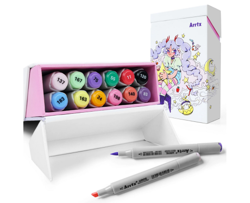 Itin ryškūs ir kokybiški profesionalūs markeriai-flomasteriai ARRTX Oros, skirti piešimui, iliustravimui, eskizavimui, ryškinimui, atvaizdavimui. Komplekte yra 12 pastelinių atspalvių. Šis markerių-flomasterių rinkinys pateikiamas su stilingo dizaino dėžute. Dėžutė sukurta taip, kad kiekvienas markeris-flomasteris turėtų atskirą skyrių, o atidarius dėžutę jos dangtis galėtų būti naudojamas kaip stovas. Tuščia dėžutė gali būti naudojama kaip daiktadėžė.Ypatybės: