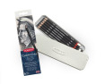 Sudėtyje yra 1 x šviesus, 2 x vidutiniai, 2 x tamsūs, 1 x tonuotas anglies baltas pieštukas ir pieštukų drožtukas.
