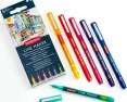 Rinkinyje 6 skirtingų spalvų 0,3 mm storio žymekliai: geltonas, raudonas, rožinis, tamsiai violetinis, mėlynas, žalias