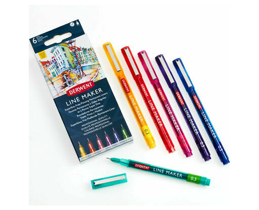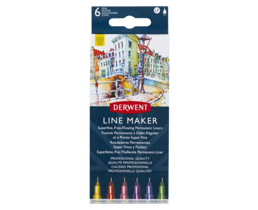 Derwent Line Makers linijos žymekliai užpildyti greitai džiūstančiu rašalu, užtikrinančiu lygias, ryškias linijas. Atsparūs blukimui. Idealiai tinka piešti kontūrus. Sukurti naudojant aukščiausios kokybės antgalius. Line Maker tipo žymekliai tinka įvairioms piešimo technikoms, pavyzdžiui naudojant su Inktense linijos produktais, kontūrai neišplaukia ir lieka ryškūs, akvarelės darbams pridėti detalių.