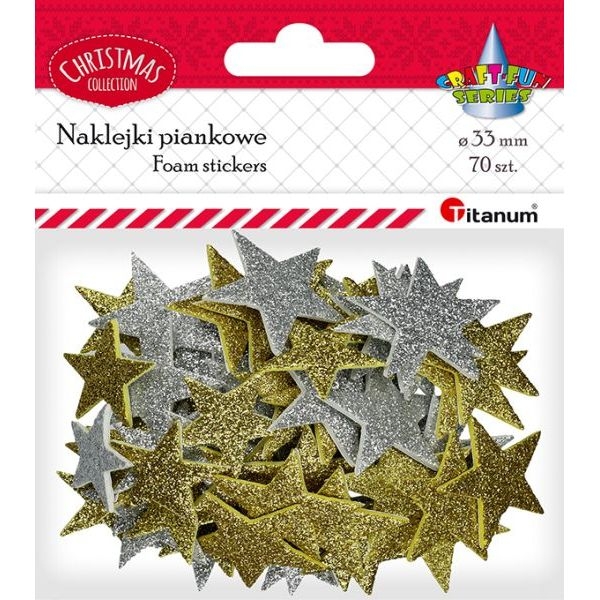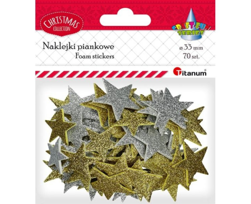 - Dekoracija iš putgumės "Lipnios žvaigždės" 70vnt. 33mm aukso ir sidabro sp. TITANUM