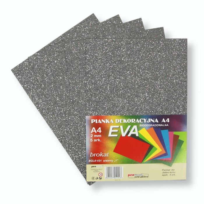 Putgumės lakštų rinkinys A4 5l. blizgantys, sidabrinės sp., BGLE-021, biologiškai skaidūs, PENWORD