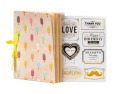 Albumas tuščiais lapais skirtas klijuoti instax nuotraukoms, albumą galite papuošti lipdukais, kurie taip pat įeina į rinkinį. Susikurkite asmeninę dovaną sau ar artimiesiems.