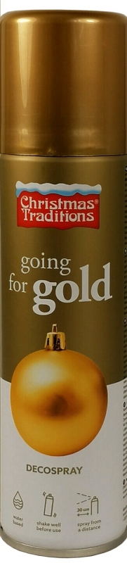 Auksinės spalvos purškiami dažai. Puikiai tinka dažyti įvairias medžiagas – plastiką, popierių, medį ir kt. Idealu naudoti dekoruojant rankų darbo kalėdines puošmenas, vainikus ar prakartėles.