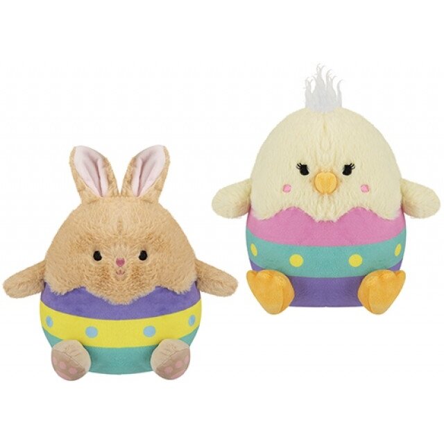 Švęskite pavasarį su šiuo žavingu 20 cm Velykų kiaušinio formos viščiuko ar zuikio pliušiniu žaislu.
