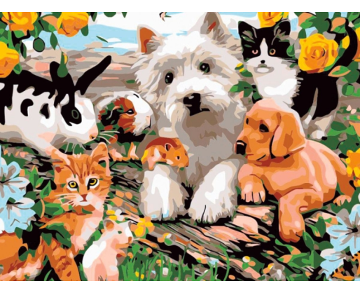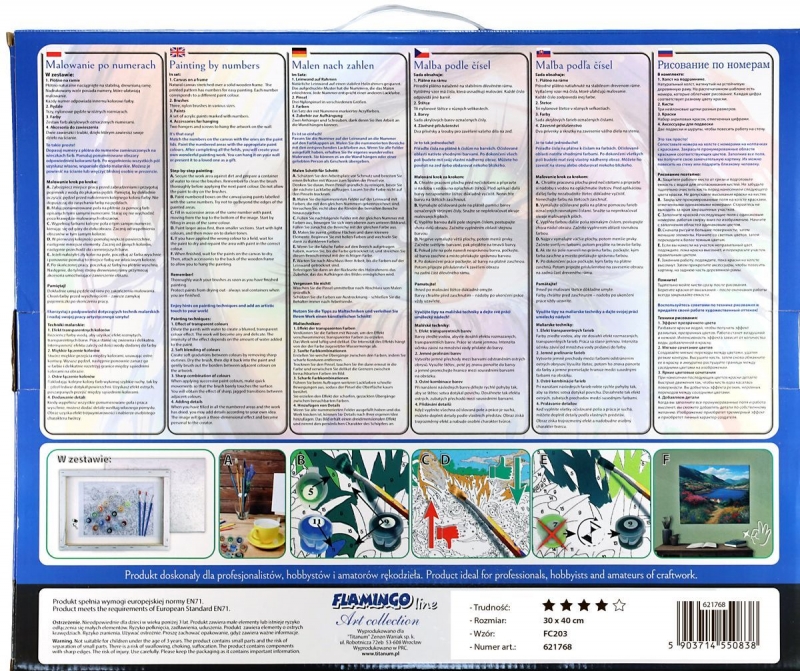 - Tapybos pagal skaičius rinkinys FLAMINGO - GYVŪNAI, 30X40CM