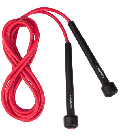 Šokinėjimo virvutė turi medines rankenas, o virvė pagaminta iš poliesterio.