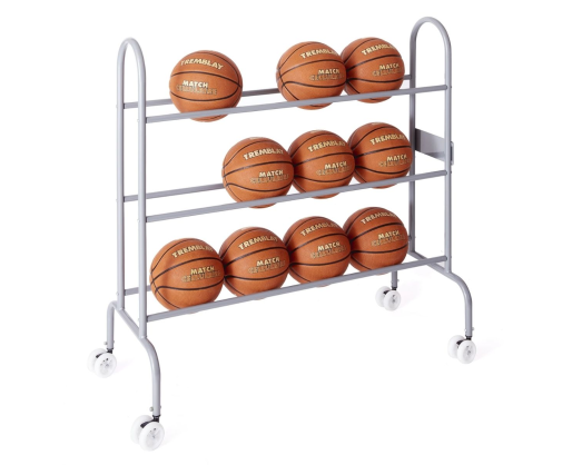 Kamuolių laikymo lentynėlė. Su 4 besisukančiais ratukais. Leidžia laikyti iki 12 kamuoliukų, kurių dydis 5 arba 7. Matmenys: 105 x 43 x 105 cm.Prekės parametrai