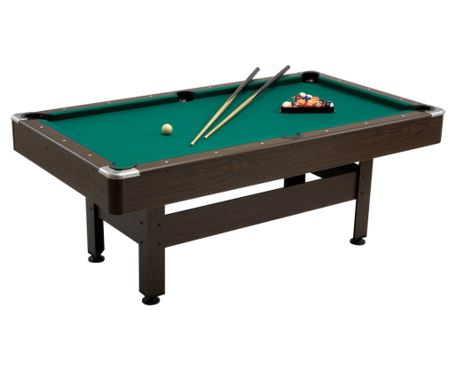 Klasikinės išvaizdos biliardo stalas turi visas savybes, patogiam ir geram žaidimui. Stalui galima papildomai įsigyti stalviršį, kurio dėka stalas transformuojasi į pietų stalą. Tvirta 15 mm storio MDF konstrukcija, tamsios riešuto spalvos. Stalo paviršius 22mm storio MDF, padengtas geros kokybės žaliu klasikiniu taklono audiniu. Chromuoti stalo kampai. Kojos yra su reguliuojamos, kad būtų užtikrinta idealiai lygus žaidimo paviršius ant nelygių grindų. Priedai: 57 mm skersmens "Standartinių" numeruotų biliardo kamuoliukų rinkinys, 2vnt. 145 cm ilgio biliardo lazdos; trikampis; 2 kreidos; šepetys. Žaidimo aikštelės išmatavimai 180 x 90cm. Stalo išmatavimai 205 x 115cm. Stalo aukštis 79 cm. Uždengto stalo aukštis 81cm. Sėdėjimo aukštis (kojoms) 61cm. Stalo Svoris 110 kg.Prekės parametrai