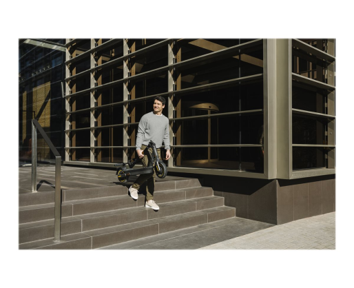 Kitos savybės Three riding modes to choose from, including a customizable sport mode that allows increased acceleration through the app. The KickScooter features an easy-to-read full-colour LED dashboard that displays real-time driving information for the rider’s convenience. Max. climb angle up to 22%. Anti-skid Traction Control System