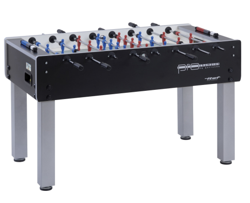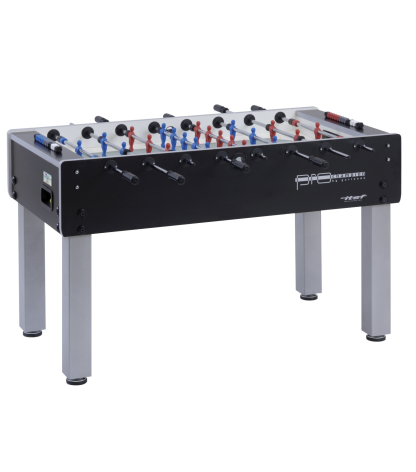 Garlando Pro Champion tai versija skirta profesionalams treniruotis bei tarptautiniams Pro Tour kategorijos turnyrams rengti. Stalas komplektuojamas su guminiais strypų eigos ribotuvais, tokiu būdu užtikrina tikslią žaidėjų eigos pabaigą bei kokybiškesnę smūgio absorbciją nei spyruokliniai eigos ribotuvai kurie komplektuojami G serijos staluose. Reguliuojamo aukščio kojos leidžia stalą statyti ant nelygaus paviršiaus. Stalas komplektuojamas su turnyriniais skaitliukais (5 spalvoti, 3 pilki ir 2 balti). Vietoje spyruoklių strypų galuose naudojamos 21mm storio guminės apsaugos geresnei smūgio absorbcijai ir tikslesnei žaidėjų eigai. Vartininko eiga apribota plastikinių apsaugų užtikrina, kad vartininko eiga apsiribos tik efektyviu vartų zonos dengimu. Stalo dydis (cm): 150 x 76 x 88 Žaidimo aikštelės išmatavimai (cm): 120 x 70.5 Žaidimo aikštelės tipas: šlifuotas grūdintas stiklas Žaidimo aikštelės storis (mm): 5 Korpuso medžiaga: Faniera dengta HPL ir dengta aliuminio profiliu Korpus