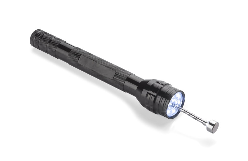 LED žibintuvėlis su 6 diodais ir prie teleskopinės svirties esančiu magnetu. Lankstus galas padės surasti smulkius metalinius daiktus ir juos nuimti su magnetu.