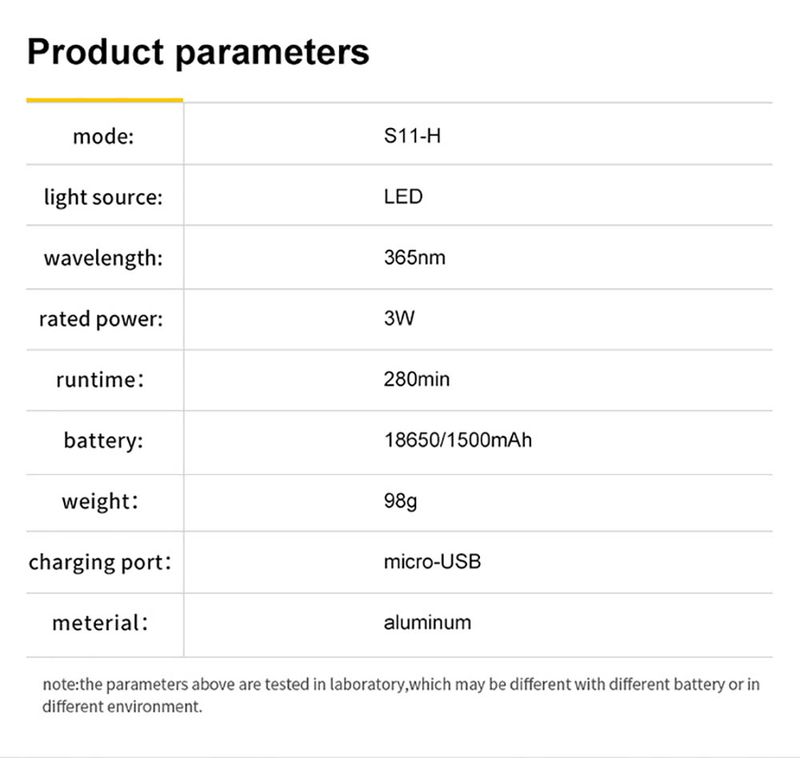 - Žibintuvėlis S11-H, ultravioletinė šviesa UV 365NM, Įkraunamas USB, Superfire
