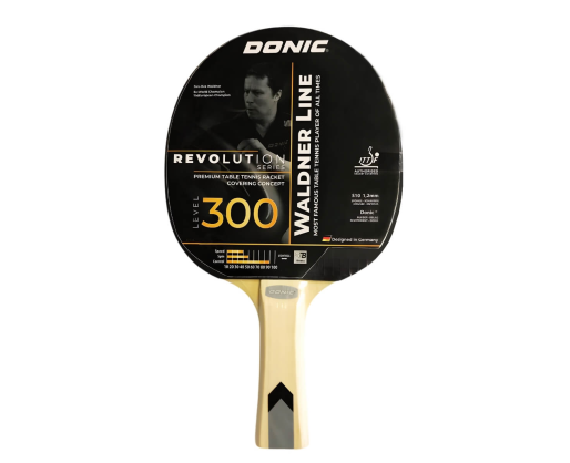 Stalo teniso raketė Donic Waldner 300, skirta vidutinio lygio žaidėjams. Mediena: basic (5B) Rankena: įgaubta Guma: Jade Gumos storis : 1,2 mm Paskirtis: vidaus Žaidimo stilius: control ITTF patvirtinta: taip Rankenos tipas: platėjanti gale Greitis: 30 Sukimas: 40 Kontrolė: 90Prekės parametrai