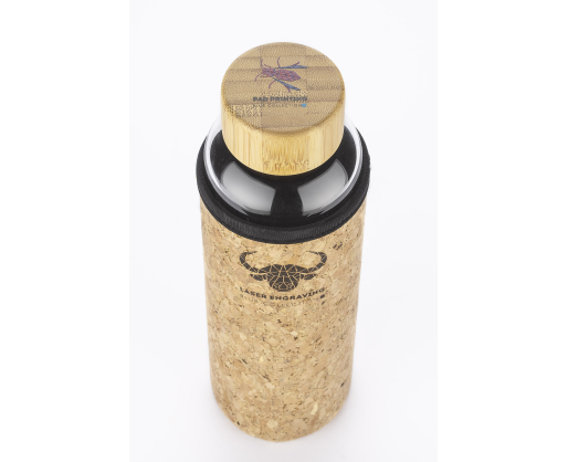 Gertuvė VENI pagaminta iš aukštos kokybės borosilikatinio stiklo, atsparaus karščiui. Bambukinis gertuvės dangtelis. Buteliukas turi kamštinį dėklą, patogesniam ir saugesniam naudojimui. Išmatavimai 65x230 mm. Galima dėti reklaminį užrašą.