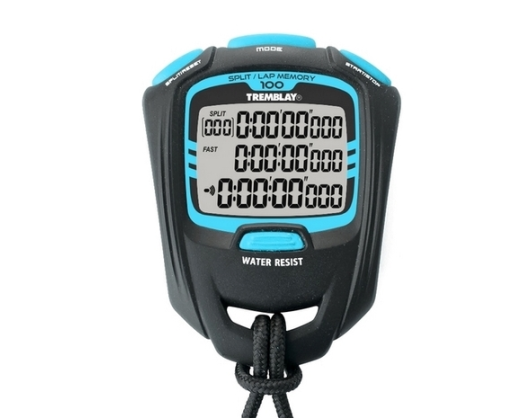Profesionalus sekundmatis Tremblay. -Tikslumas: 1/100 sekundėmis -Atmintis: 100 -Trijų eilučių didelis ekranas -Suminis ratų laiko matavimas -Rato laiko matavimas -Dvigubas žadintuvas -Atgalinis laikmatis -Atsparus vandeniui iki 10 m -Atsparus smūgiams -Srautų skaičiavimo funkcijaPrekės parametrai