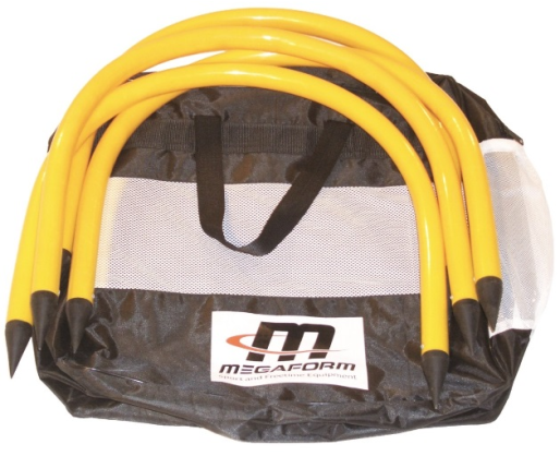Rinkinyje 4 vnt. arkų su PVC smaigaliais, krepšys Ideali priemonė lavinti tikslumą. Arkos skersmuo: 40 cm.Prekės parametrai