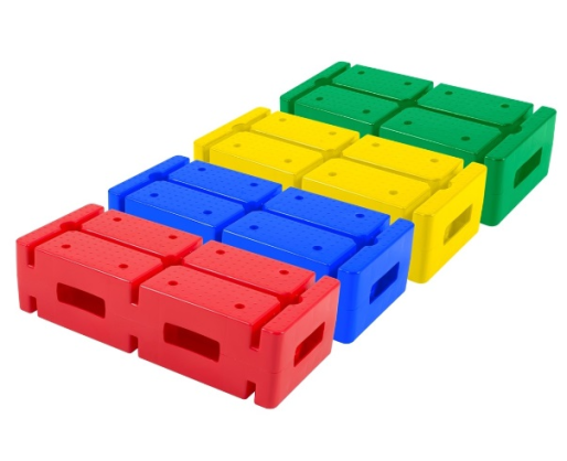 Šiuo pagrindu galima vaikščioti. Spalva: mėlyna/geltona/raudona/žalia. Ilgis: 35,5 cm. Aukštis: 9 cm. Medžiaga: polipropilenas. 4 vnt Galima įrengti kliūčių ruožą, derinama su: (parduodama atsikirai) plokščiais žiedais (M404246), lazdelėmis (M404254), spaustukais (M404258), kibirėliais (M403610), kad būtų galima įrengti kliūčių ruožą.Prekės parametrai