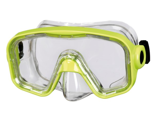 Nardymo kaukė vaikams vyresniems nei 12 metų vaikams. Pagaminti iš grūdinto stiklo - nesibraižo, ilgai tarnauja. Galvos dirželis skaidrus, silikoninis. Galvos juosta galima reguliuoti sagtelės pagalba. Spalva- geltona.