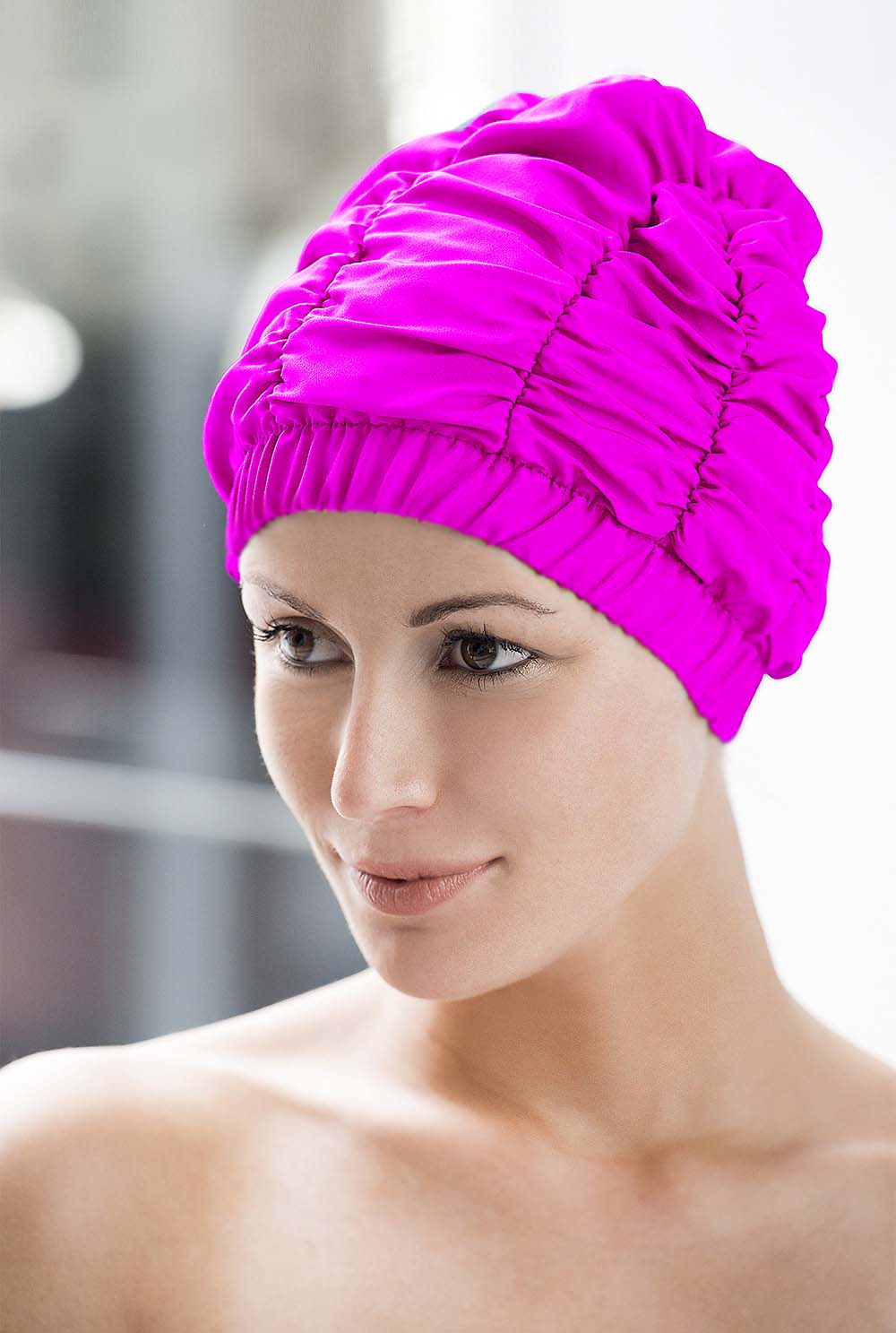 FASHY dušo kepuraitė PE 3620 44 Fashy maudymosi kepuraitė nesiglamžo, nesugeria drėgmės, todėl greitai džiųsta. Audinys tamprus, plati ir minkšta juosta užtikrina, kad kepuratė laikytųsi tvirtai bei neslystų. Kepuraitės viduje yra neperšlampamas plastikinis audinys. Spalva: rožinėPrekės parametrai