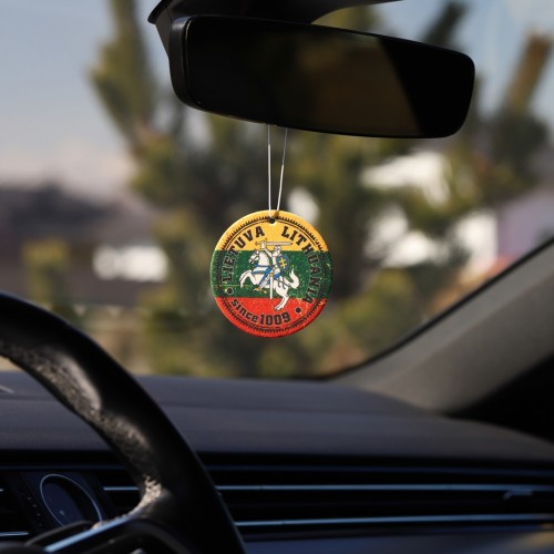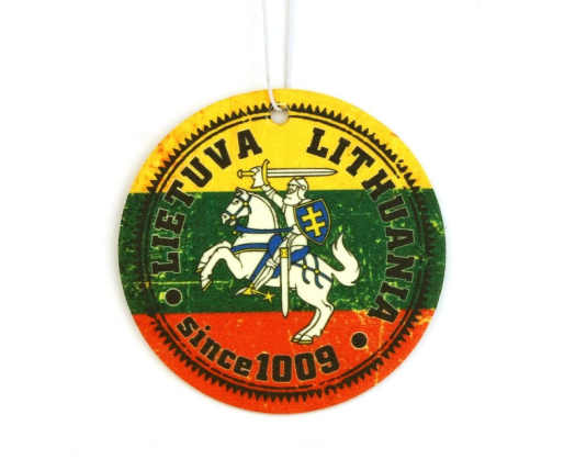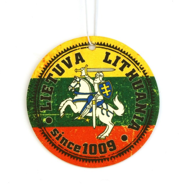 Suvenyrinis Oro gaiviklis automobiliui "Lietuva 1009". Gaiviklio dydis: 75x75mm, kvapas "Si Armani"