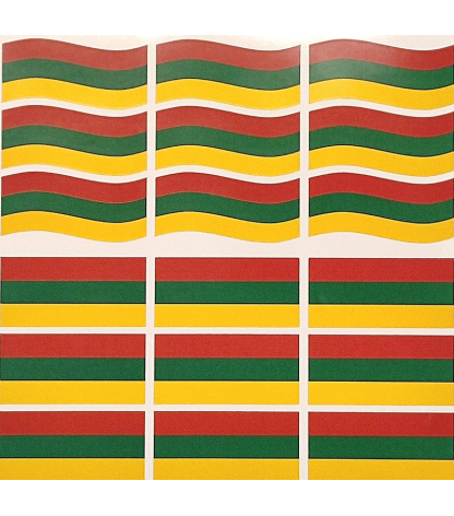 Štampuoto metalo ženkliukas Lietuva - Gedimino stulpai, padengtas įvairiomis spalvomis ir skaidria epoksidine derva, užsegamas drugelio formos užsegimu.