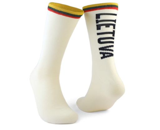 Stilingos ir patogios baltos vyriškos kojinės „LIETUVA“.
