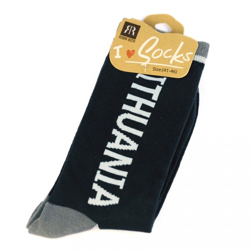 Išskirtinės vyriškos tamsios kojinės su "Lithuania" užrašu. Šios madingos ir patogios kojinės ne tik suteiks jums šilumos, bet ir išreikš jūsų ryšį su šalimi.
