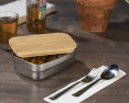 Maisto indas TORE pagamintas iš nerūdijančio plieno. Indas turi dangtelį, pagamintą iš natūralaus bambuko. Indo privalumas yra tai, kad jis nesugeria maisto kvapų. 620ml.