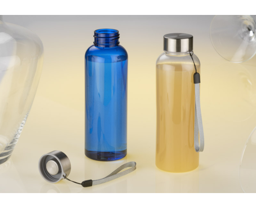 Vandens butelys pagamintas iš RPET plastiko. Tai alternatyva vienkartiniams plastikiniams buteliams. Iš plastiko ir plieno pagamintas dangtelis turi virvelę, kurią patogu naudoti.