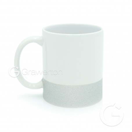 Puodelis baltas sublimacinis GLITTER RING sidabrinis 95x80 mm|894346