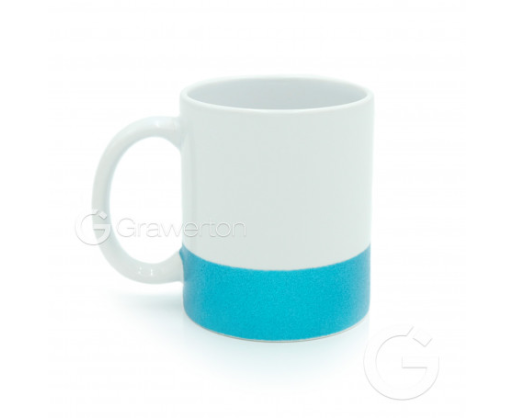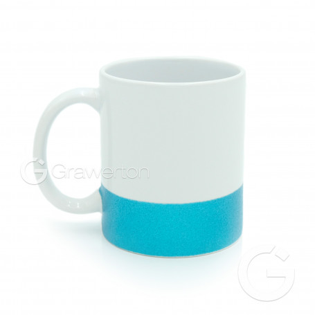 - Puodelis baltas sublimacinis GLITTER RING žydras 95x80 mm|894344