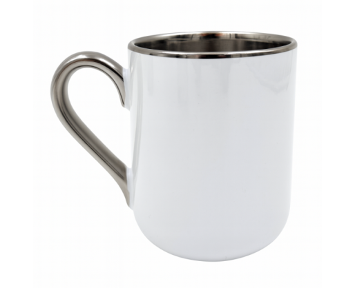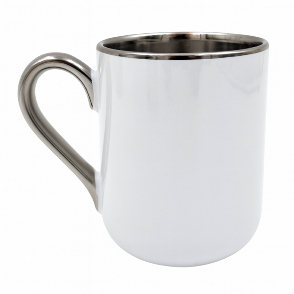 Puodelis ELIT baltas sidabrinė rankenėlė ,apvadas 95x80 mm|894594