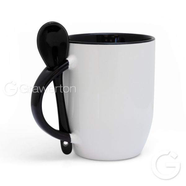 - Puodelis juodas vidus su šaukšteliu Kazo De Lux 100x82mm| 811124