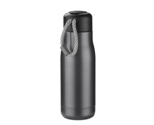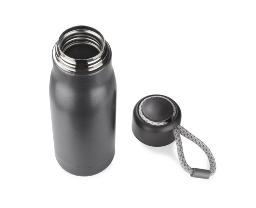 Termo gertuvė plastikiniu dangteliu su virvele. Dėka tarp sienų esančio vakuumo, jis palaiko temperatūrą iki 12 valandų. Galimas logo dėjimas. 350 ml, išmatavimai: 70x260mm