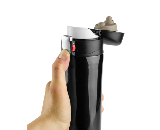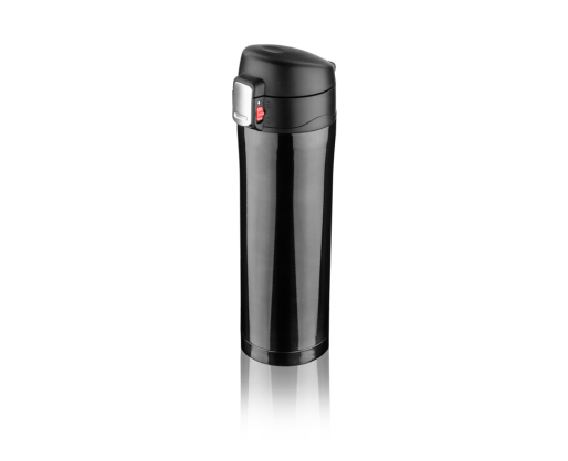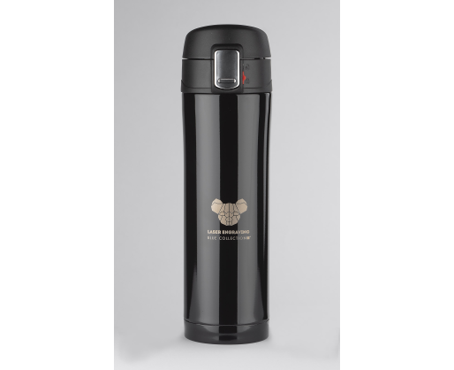 Išmatavimai 230x65 mm. Plieninis vidus, išlaiko šilumą iki 13 val. Termo puodelis su užraktu, kuris neleis gėrimui išsilieti. Galima dėti reklaminį užrašą.