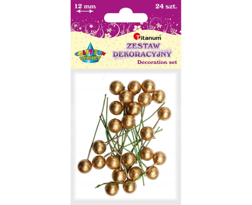 - Dekoracija Burbulas aukso spalvos su vielyte, 12mm 24vnt. TITANUM