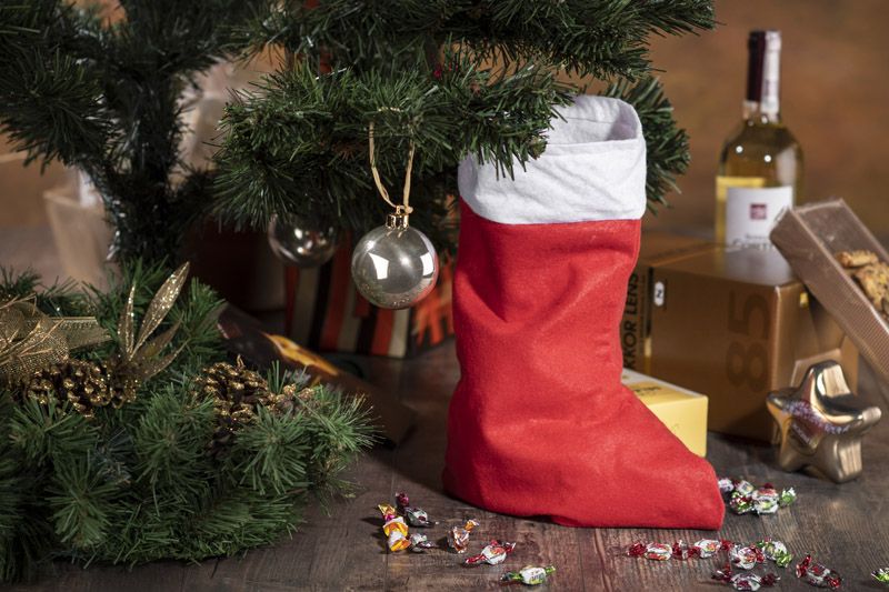 Gaminys pagamintas iš malonaus liesti veltinio. Ši kojinė yra gana talpi ir gali būti naudojama kaip dovanų dėžutė.