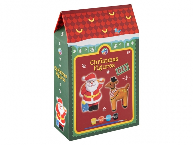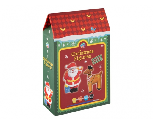 Rinkinį sudaro 2 nedidelės figūrėlės: Kalėdų Senelis, elnias arba kiti šventiniai personažai, kurias galima nuspalvinti pagal savo fantaziją.
