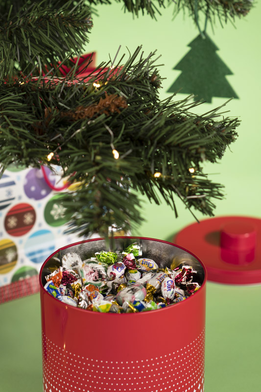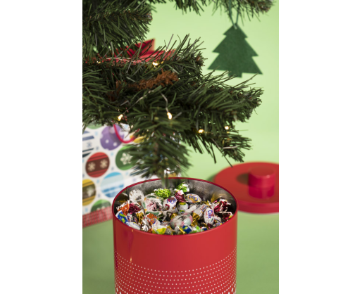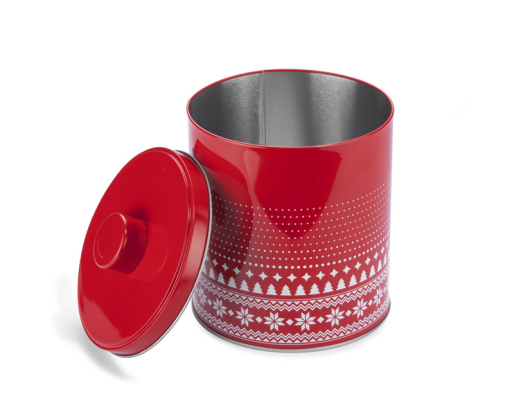 Skardinis indas su dangčiu sausainiams ar saldainiams. Puikus dekoratyvinis elementas Kalėdoms.
